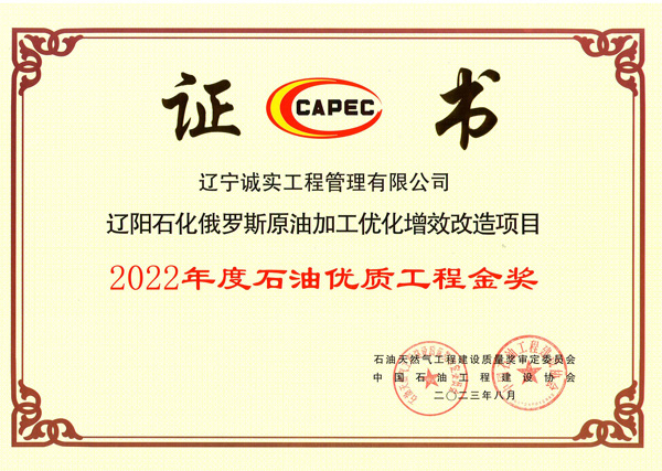 2022年度石油優(yōu)質(zhì)工程金獎(jiǎng)