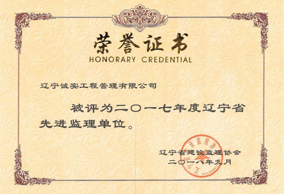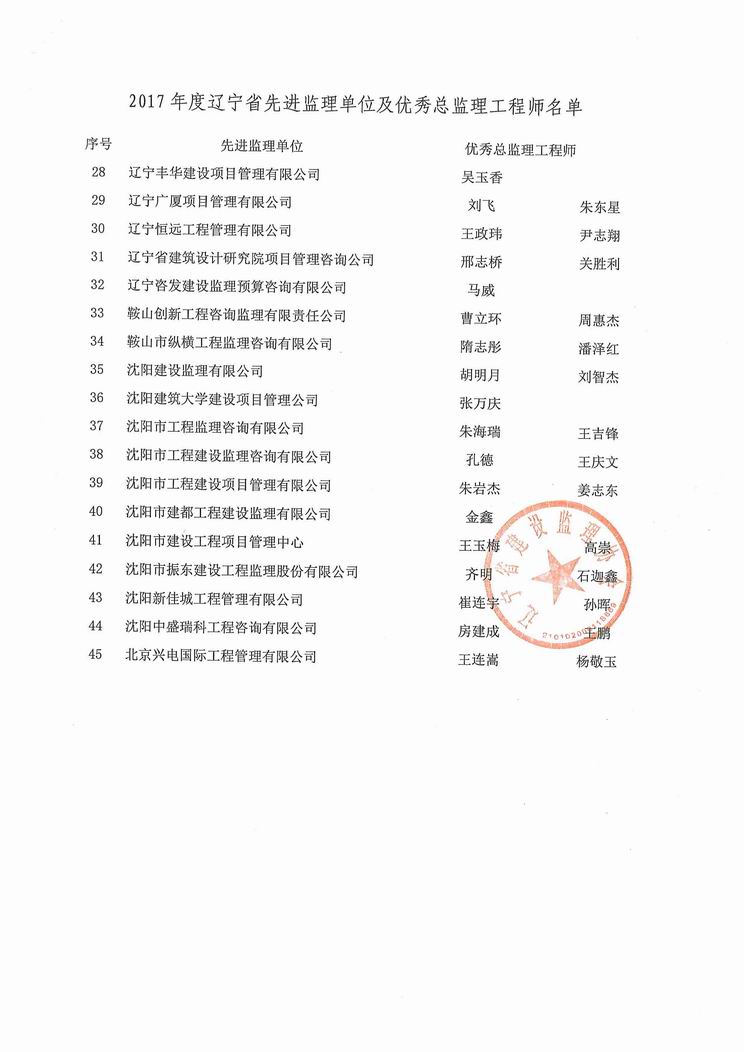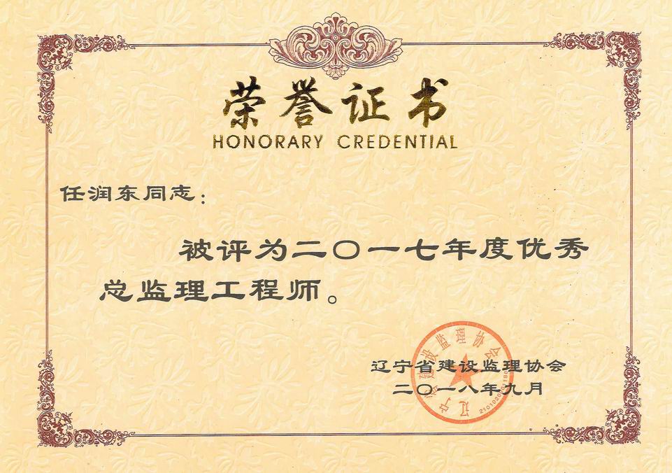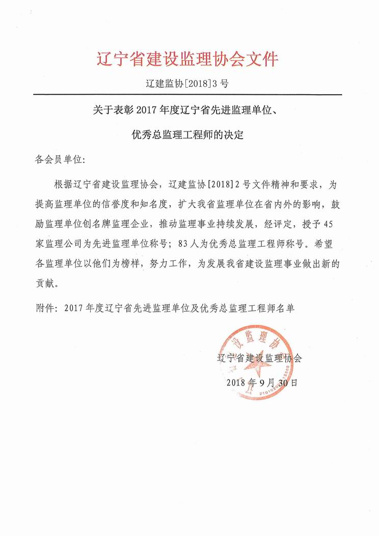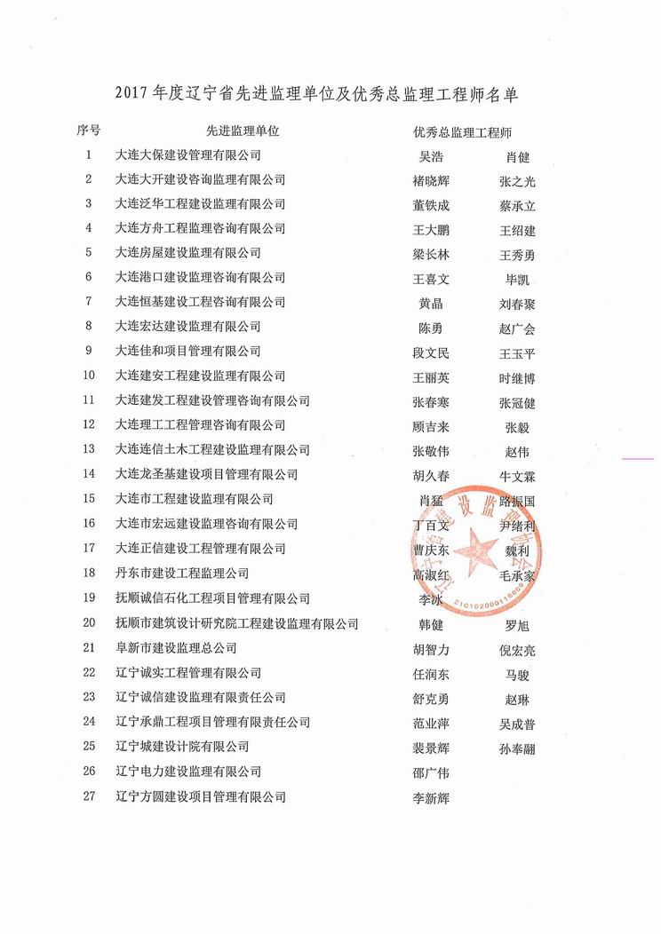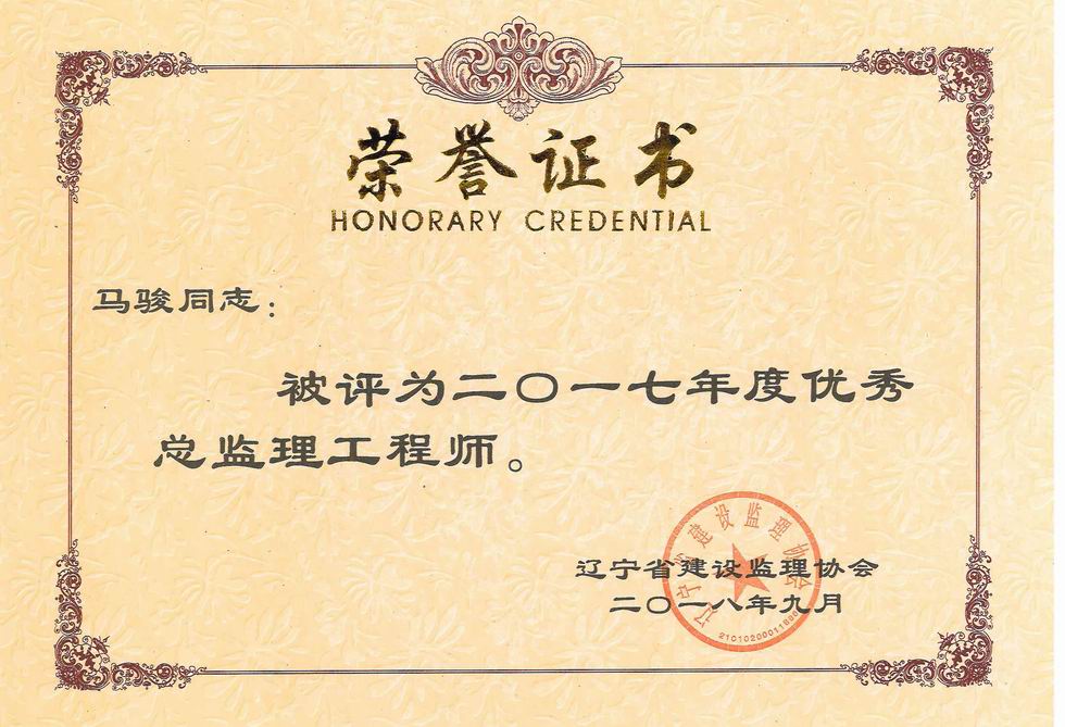 我公司被遼寧省建設監理協會評為2017年度遼寧省先進監理單位、任潤東和馬駿被評為優秀總監理工程師