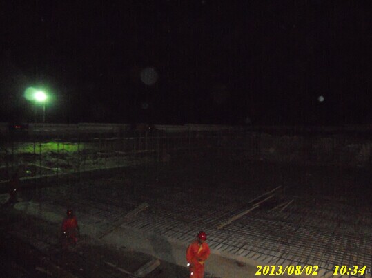 壓縮機廠房基礎環墻混凝土夜間澆筑施工現場